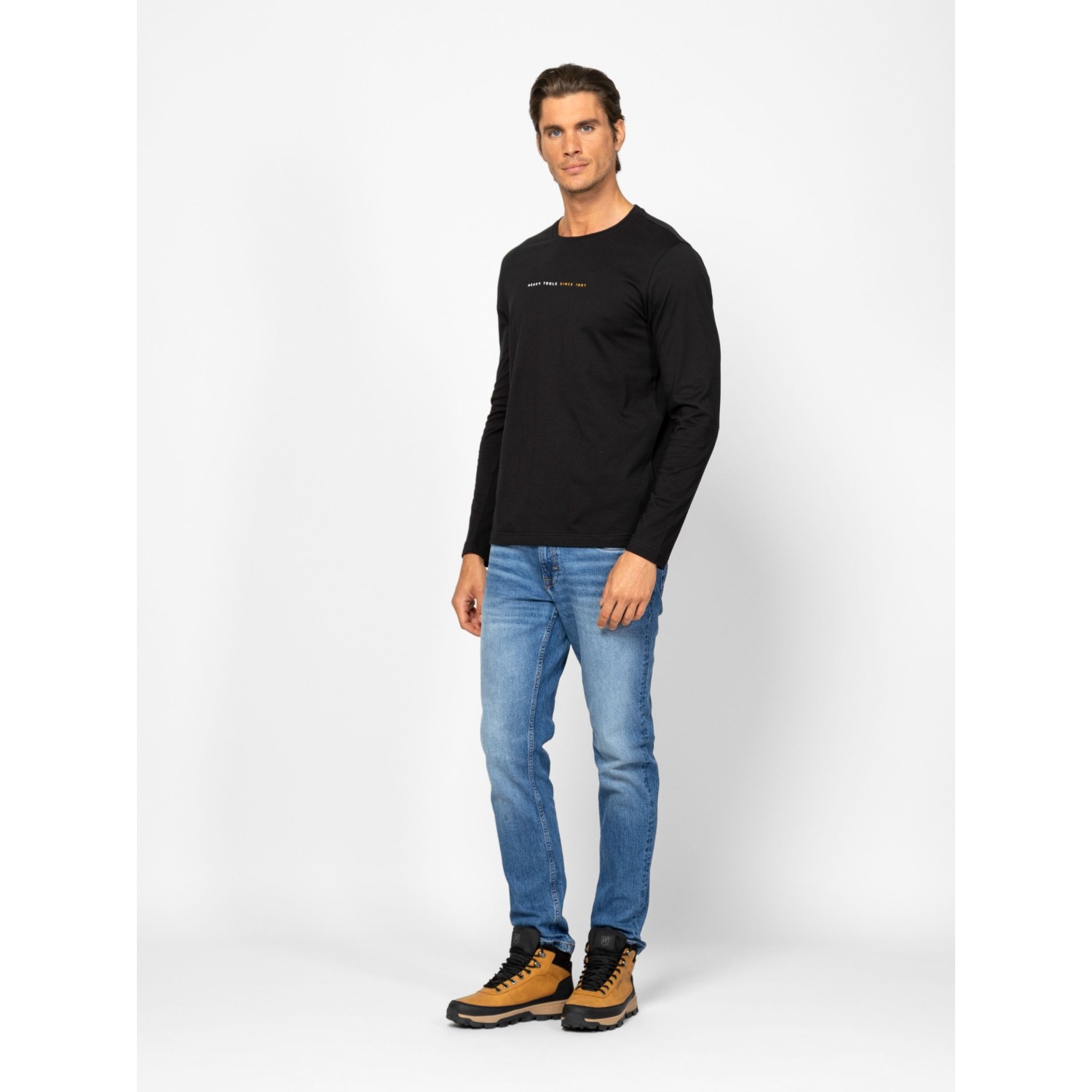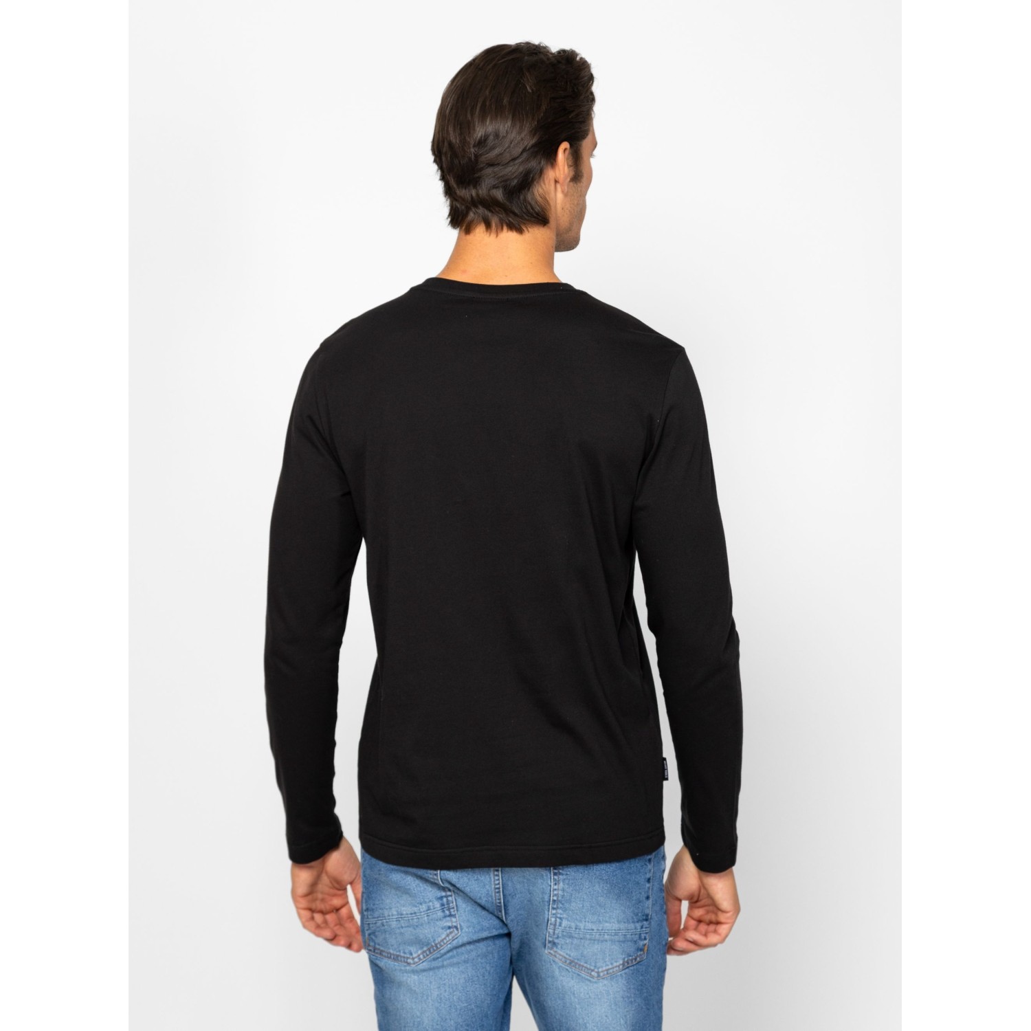 Férfi hosszú ujjú póló tiszta pamut anyagból, kényelmes kerek nyakkal, elején nyomott márkajelzéssel, oldalában szövött címkével. Anyaga: 100% pamut, single jersey. A modell 188 cm magas és L-es méretet visel.