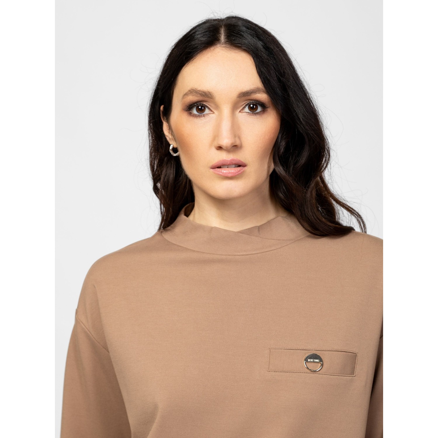 Női pulóver, bővebb szabással, átlapolt álló gallérral, ejtett vállakkal, gumírozott aljjal és kézelővel, eleje mell részen díszzsebbel, magas viszkóz tartalmú anyagból, logózott gombbal a zseben és kis fém márkajezéssel a hátán. Viseld hozzá NERDA szoknyánkat, vagy ZAMORKAW25 nadrágunkat az új kollekcióból. Anyaga: 63% viszkóz, 32% nylon, 5% elasztán. A modell 175 cm magas és S-es méretet visel.