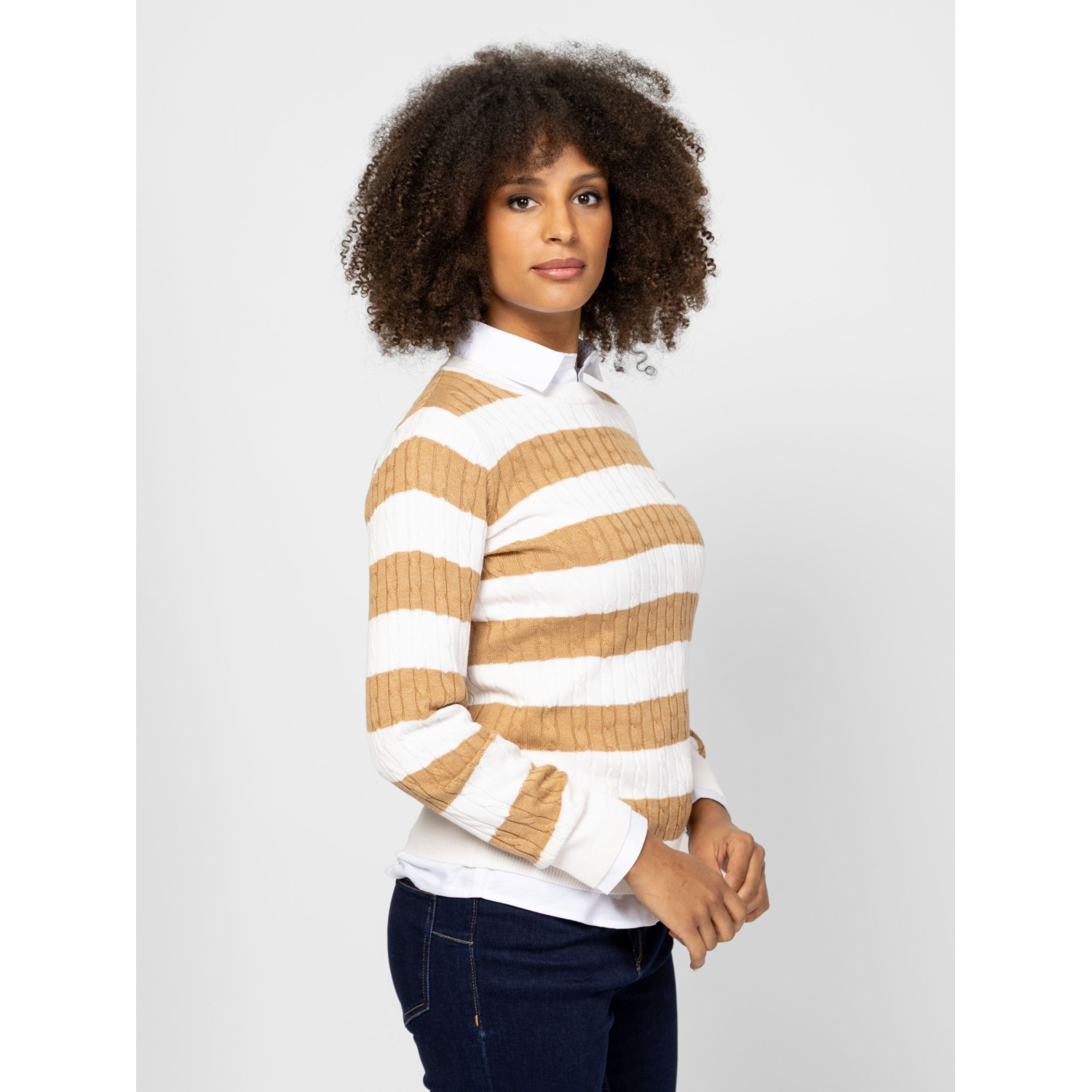 Női kötött pulóver, klasszikus szabással, kerek nyakkal, csavart kötésmintával, kis szövött márkajelzéssel az elején. Anyaga: 55% akril, 45% pamut, kötött anyag. A modell 175 cm magas és S-es méretet visel. Women's knit sweater with classic cut, round neck, twisted knit pattern, small woven branding on the front. Material: 55% acrylic, 45% cotton, knitted fabric. The model is 175 cm tall and wears size S. Dámský pletený svetr s klasickým střihem, kulatým výstřihem, krouceným vzorem pletení, malým tkaným logem na přední straně. Materiál: 55 % akryl, 45 % bavlna, pletenina. Modelka měří 175 cm a nosí velikost S. Pulover tricotat pentru femei, cu croiala clasica, guler rotund, model tricotat rasucit, branding mic tesut pe partea din fata. Material: 55% acril, 45% bumbac, tesatura tricotata. Modelul are inaltimea de 175 cm si poarta marimea S. Dámsky pletený sveter s klasickým strihom, okrúhlym výstrihom, vzorom z krúteného úpletu, malým tkaným logom na prednej strane. Materiál: 55% akryl, 45% bavlna, pletenina. Modelka má 175 cm a nosí veľkosť S.