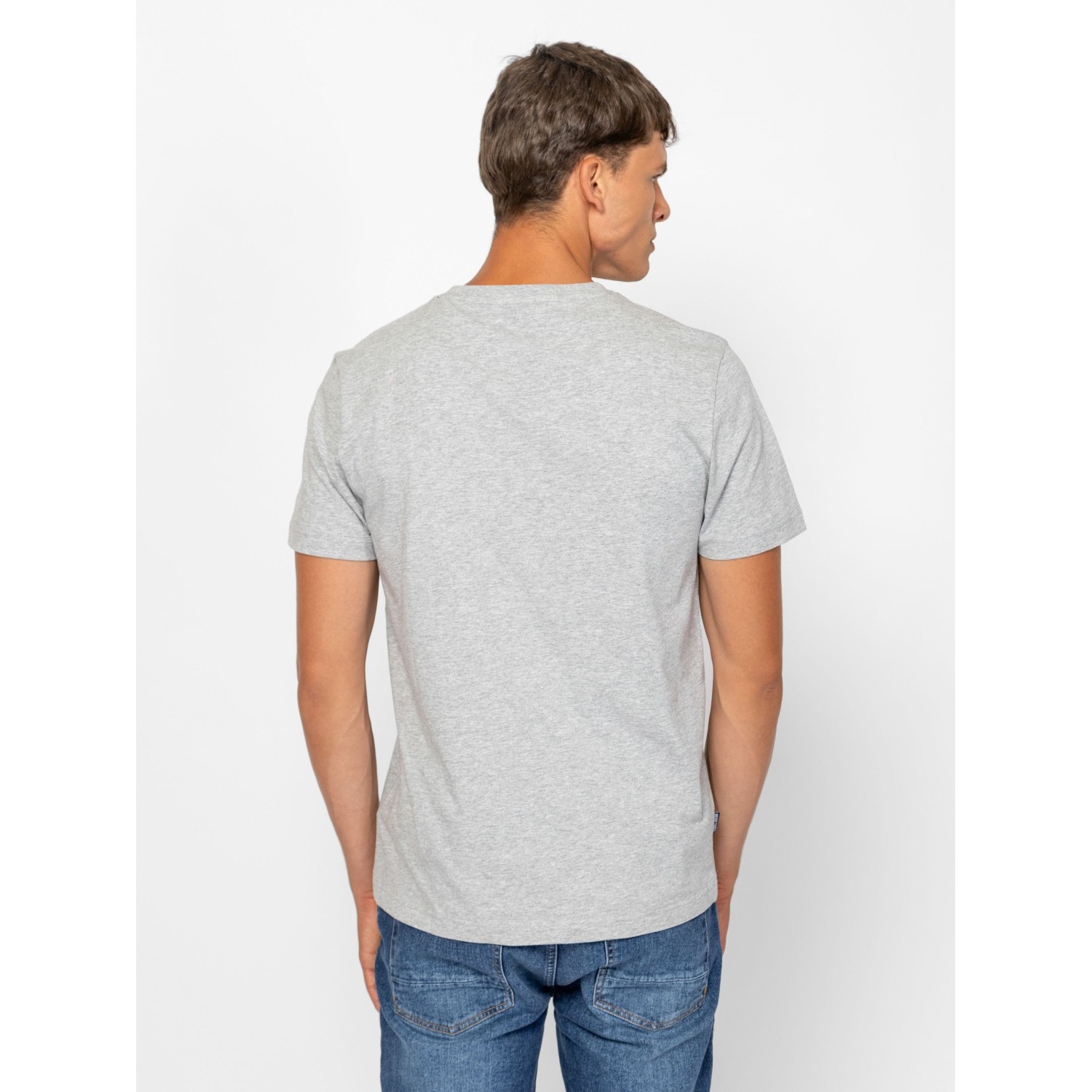 Férfi rövid ujjú póló, egyenes szabással, kerek nyakkal, elején nyomott márkajelzéssel, oldalában szövött címkével. Anyaga: 100% pamut, single jersey. A modell 188 cm magas és L-es méretet visel.