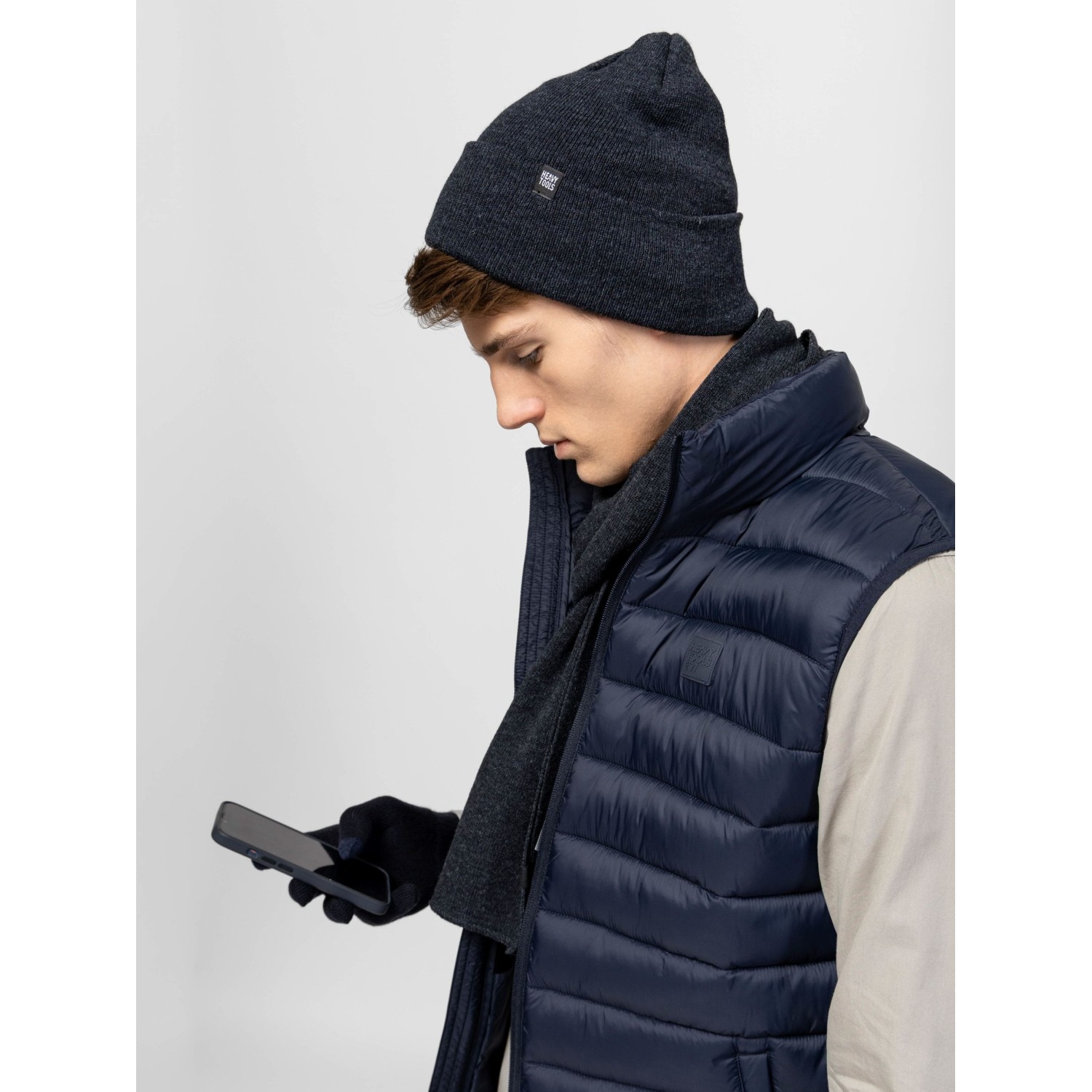 Férfi kötött kesztyű, az ujjak végén érintő képernyő kompatibilis fonallal, a telefonok és egyéb felszerelések kesztyű levétel nélküli használatához. Anyaga: 100% akril.