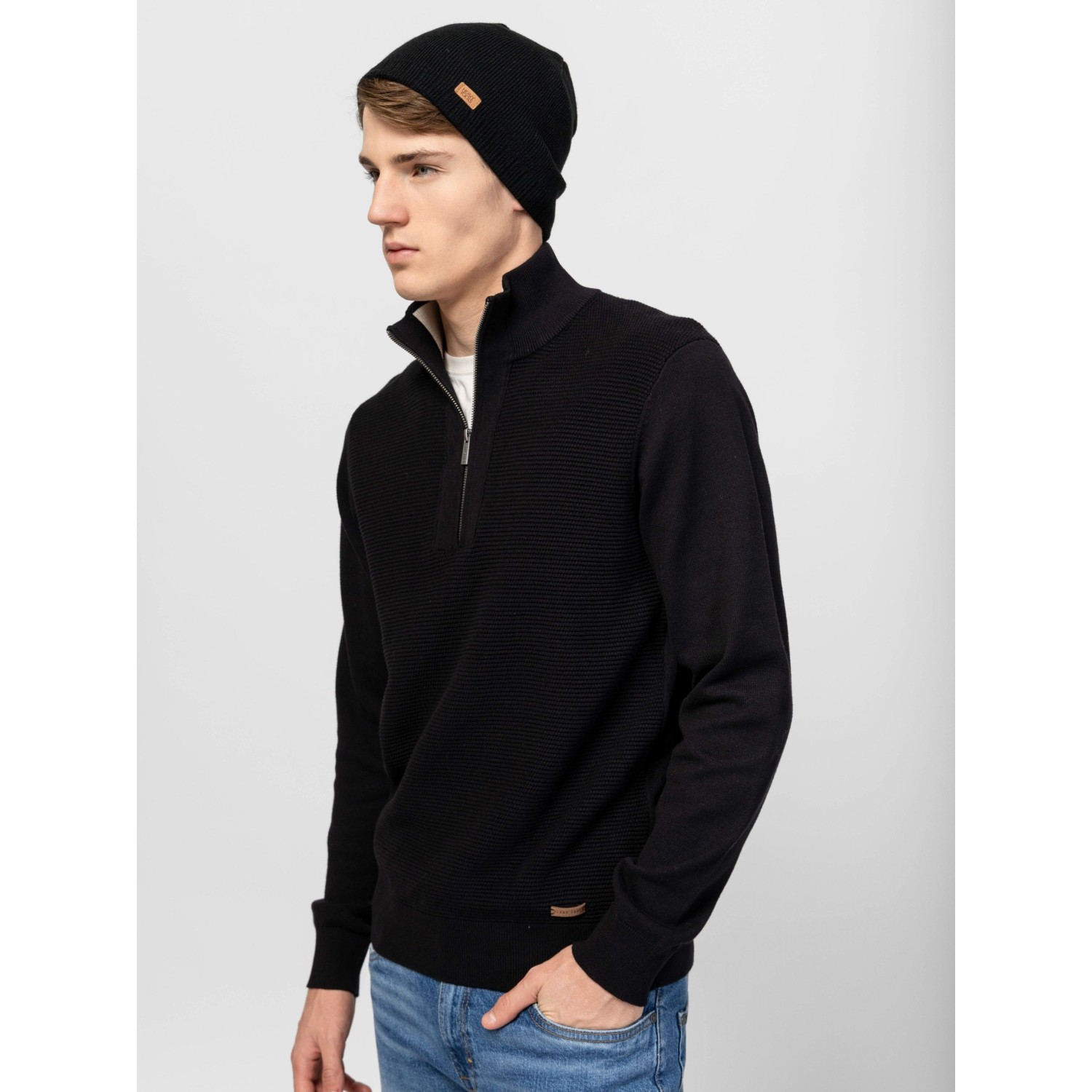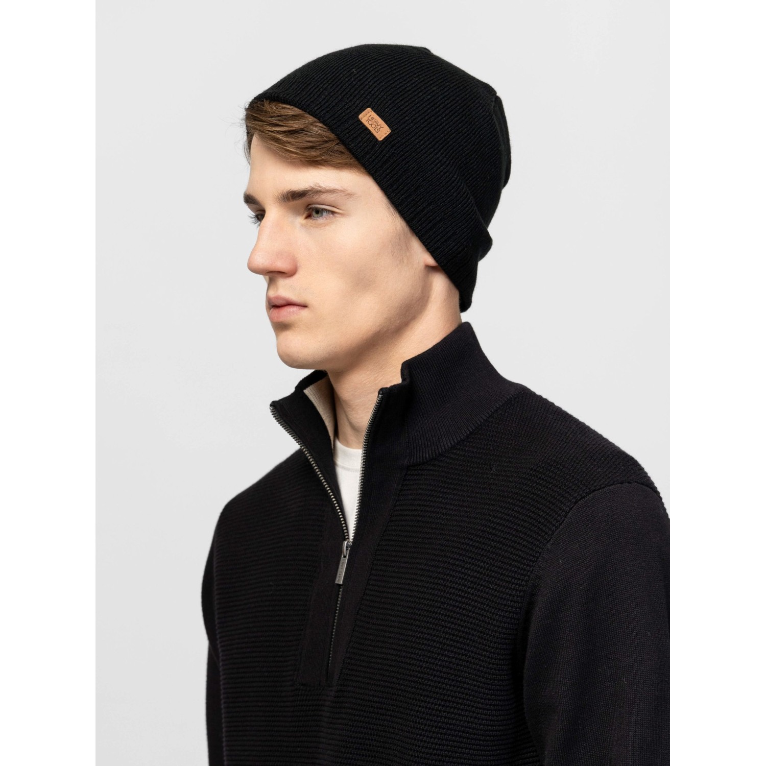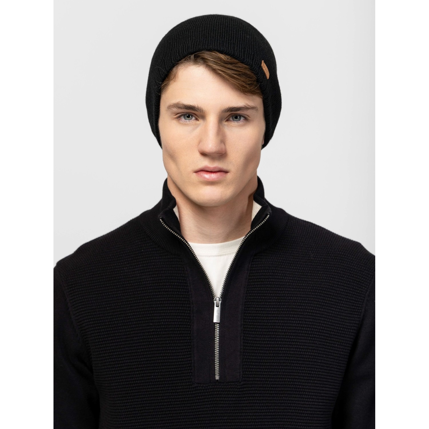 Férfi kötött sapka, oldalán kis márkajelzéssel, alap színekben. Anyaga: 65% akril, 35% poliészter.
