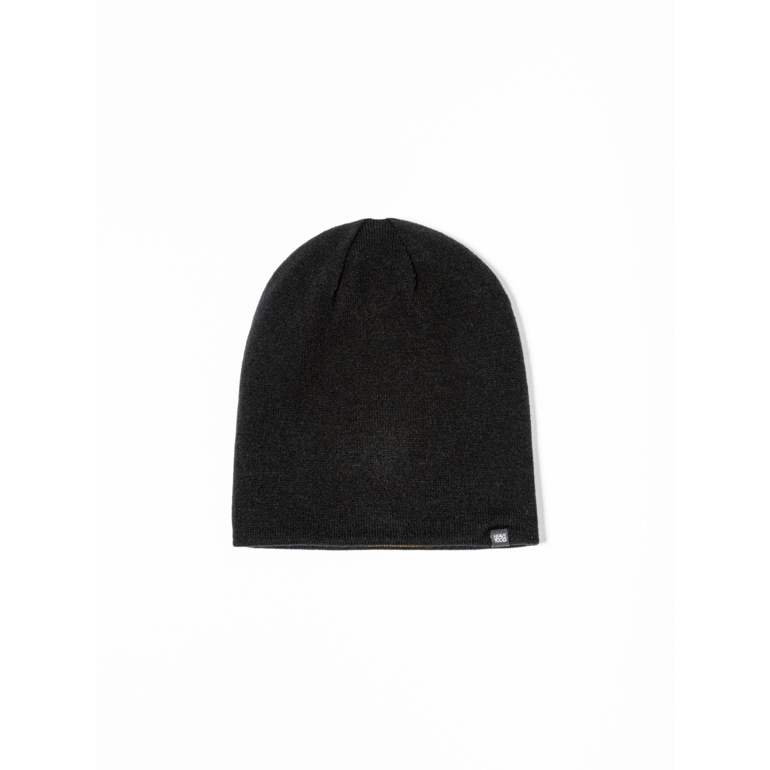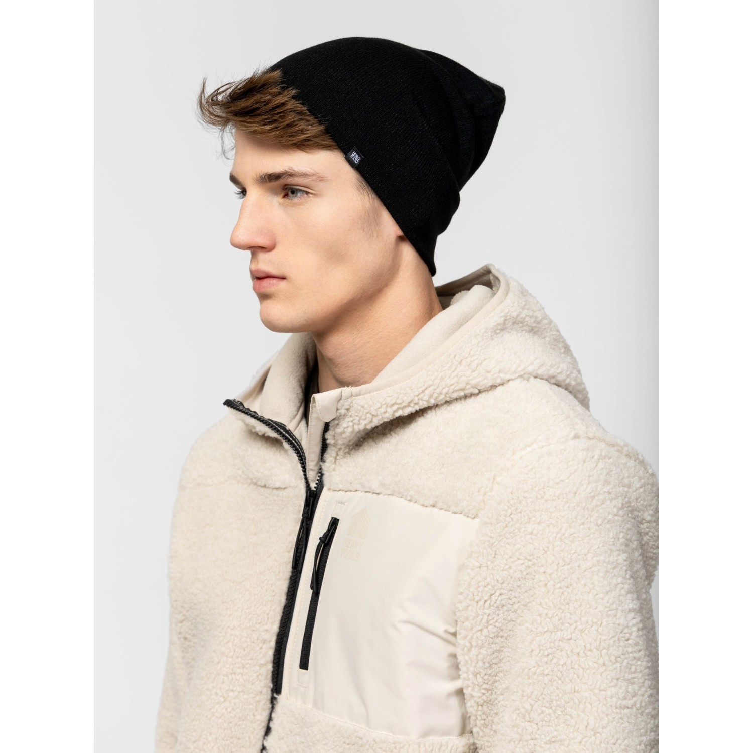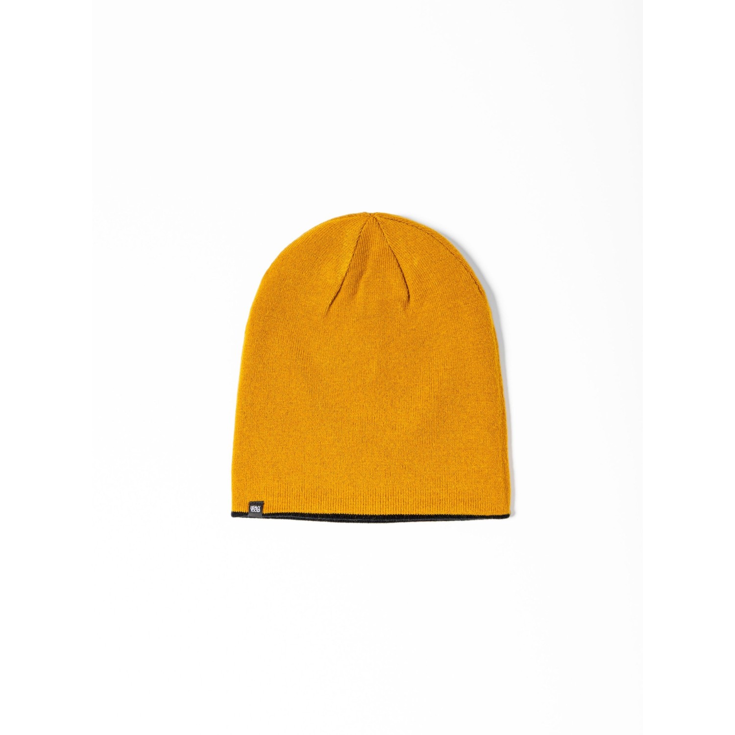 Férfi kifordítható kötött sapka, kis szövött márkajelzéssel. Anyaga: 95% akril, 5% elasztán.