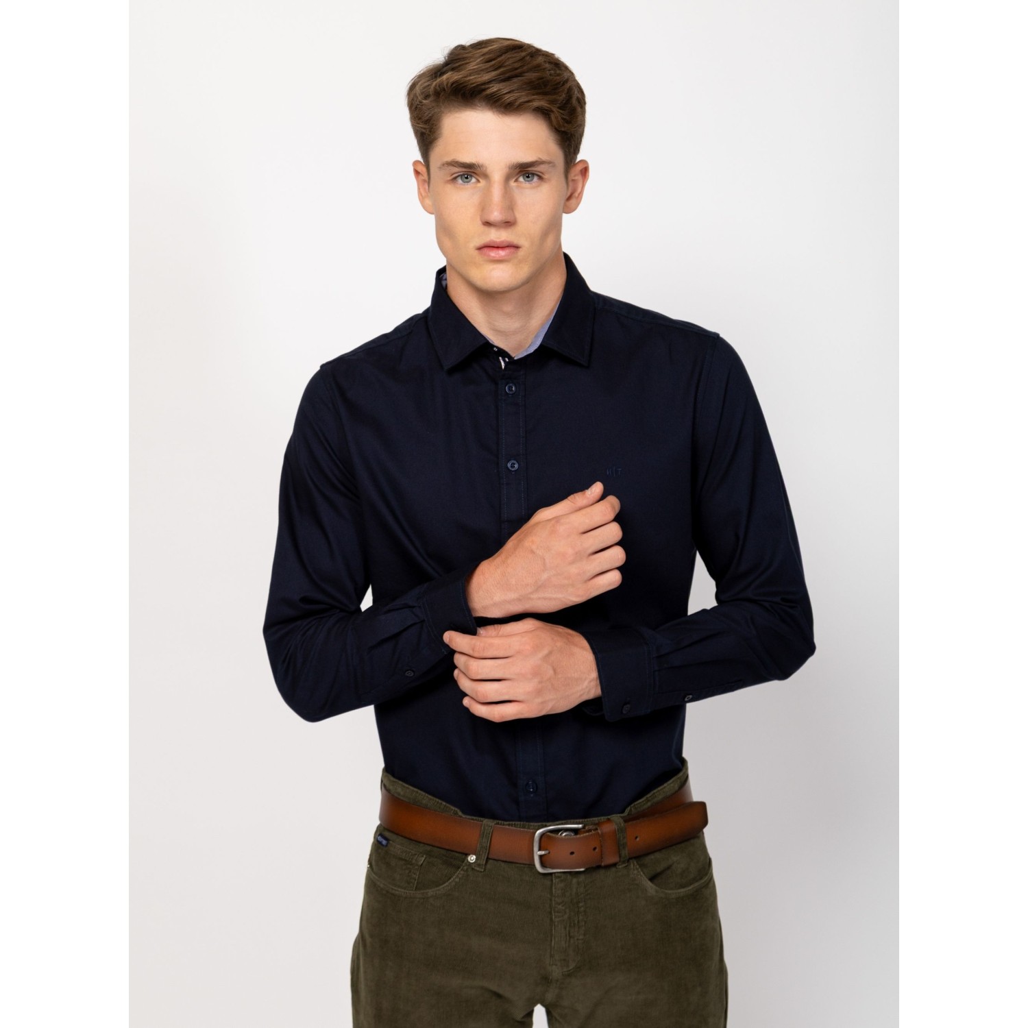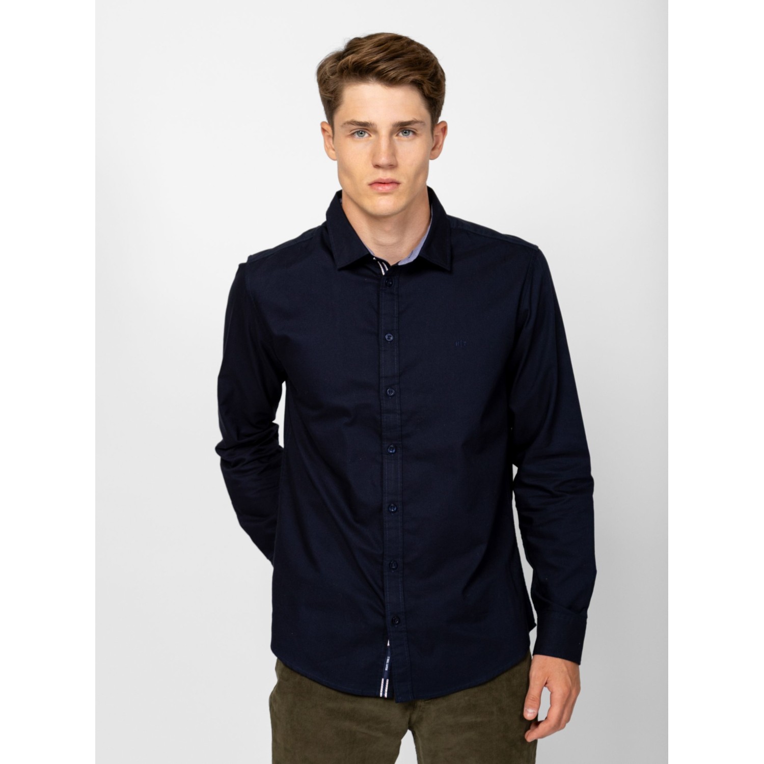 Férfi hosszú ujjú ing, comfort fit szabással, szépen kidolgozott gallér és mandzsetta megoldással, elején kis hímzett márkajelzéssel. A tiszta pamut anyag kellemes érzetet biztosít akár egész napos viselet során is. Anyaga: 100% pamut, oxford anyag. A modell 188 cm magas és L-es méretet visel.