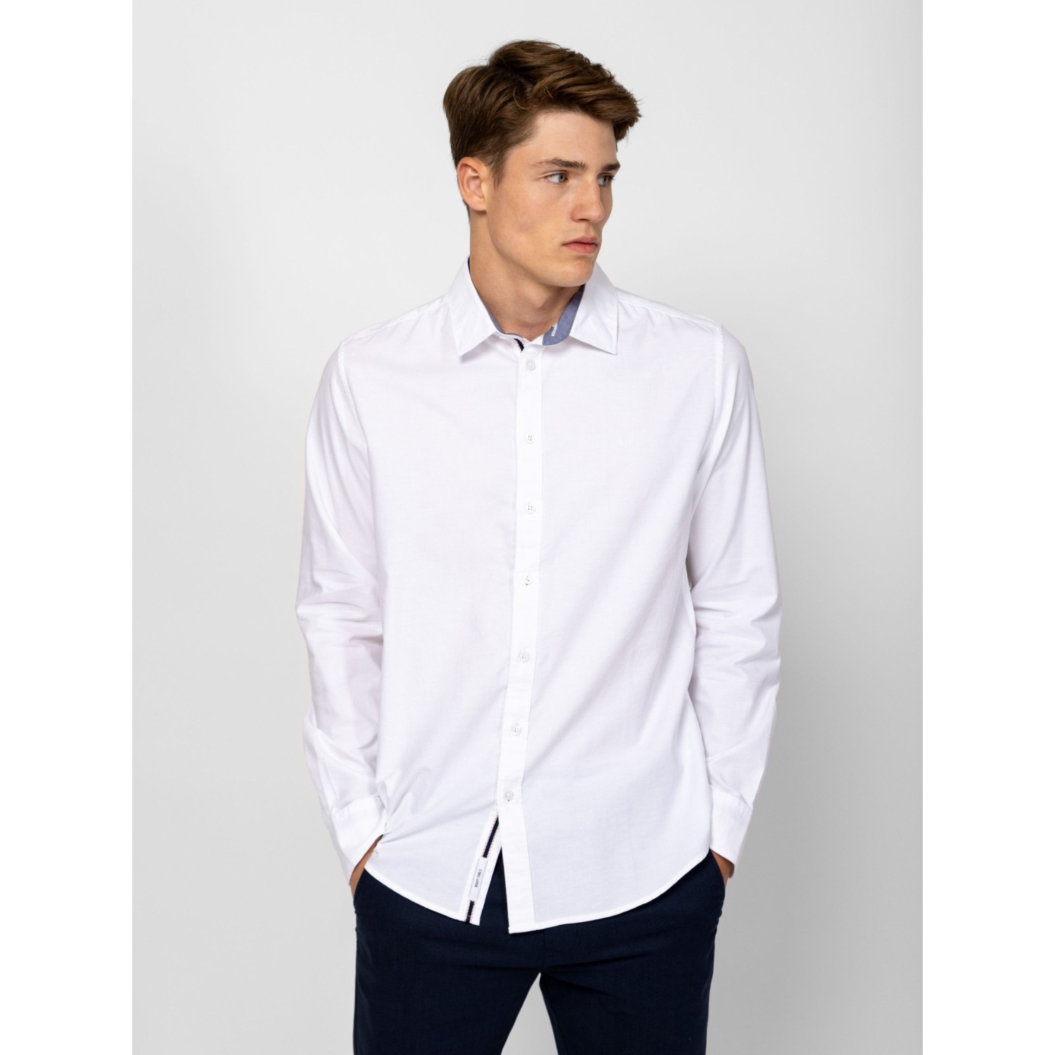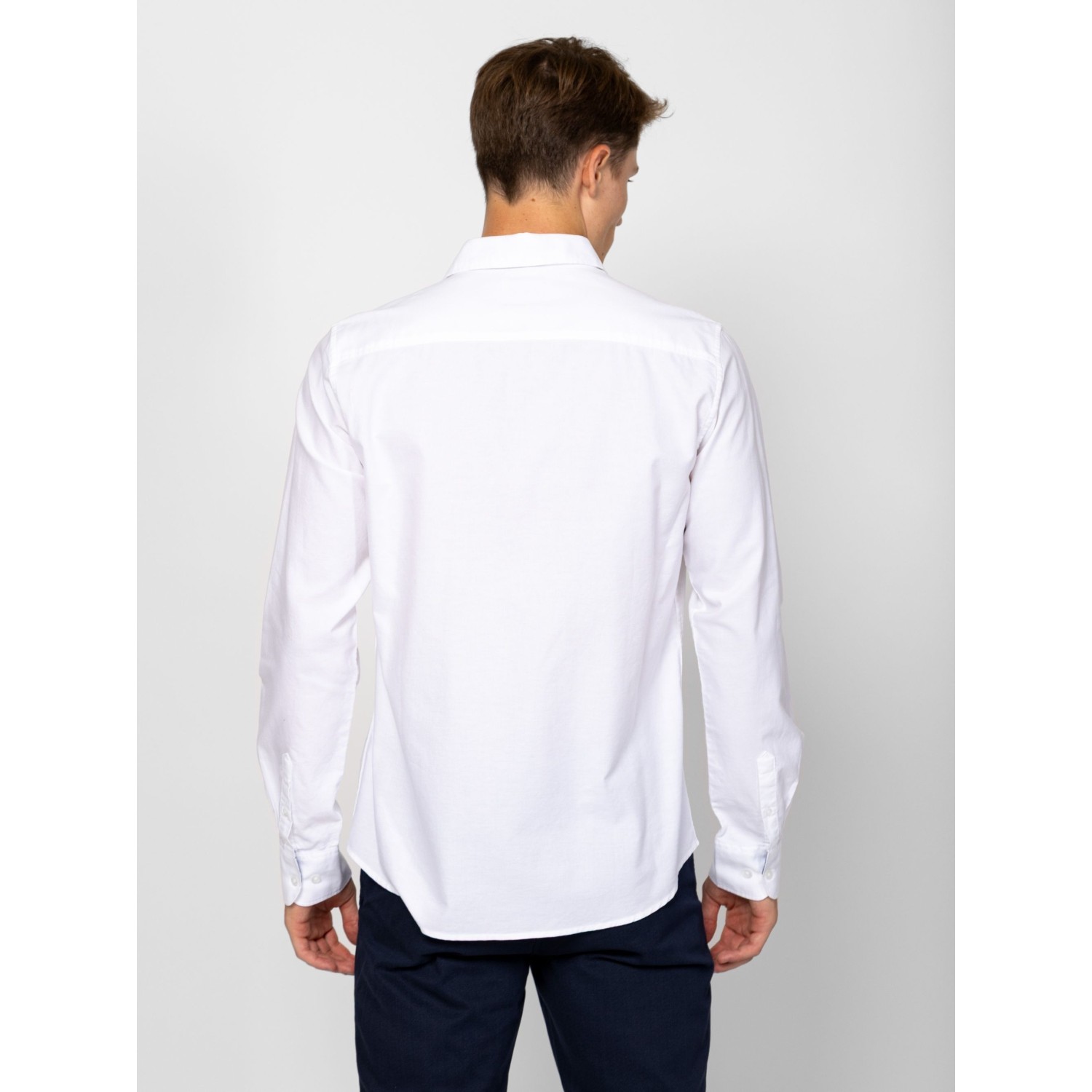 Férfi hosszú ujjú ing, comfort fit szabással, szépen kidolgozott gallér és mandzsetta megoldással, elején kis hímzett márkajelzéssel. A tiszta pamut anyag kellemes érzetet biztosít akár egész napos viselet során is. Anyaga: 100% pamut, oxford anyag. A modell 188 cm magas és L-es méretet visel.