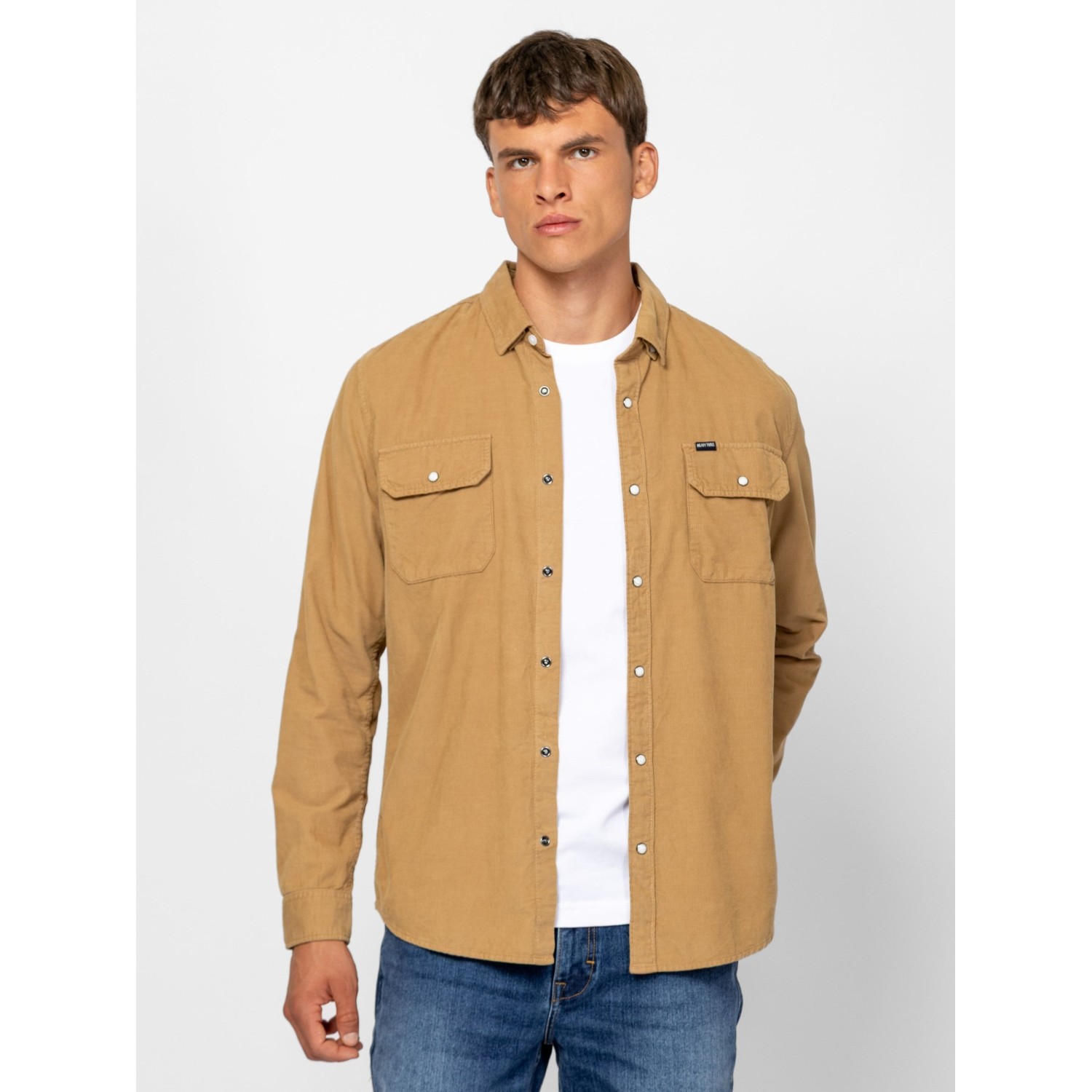 Férfi hosszú ujjú kordbársony ing, comfort fit fazonnal, patentos záródással, trendi színekben, tiszta pamut anyagból, szépen kidolgozott gallér és mandzsetta megoldással, elején zsebfedős zsebekkel, kis szövött márkajelzéssel a bal zsebfedőn. Anyaga: 100% pamut, farmer. A modell 188 cm magas és L-es méretet visel.
