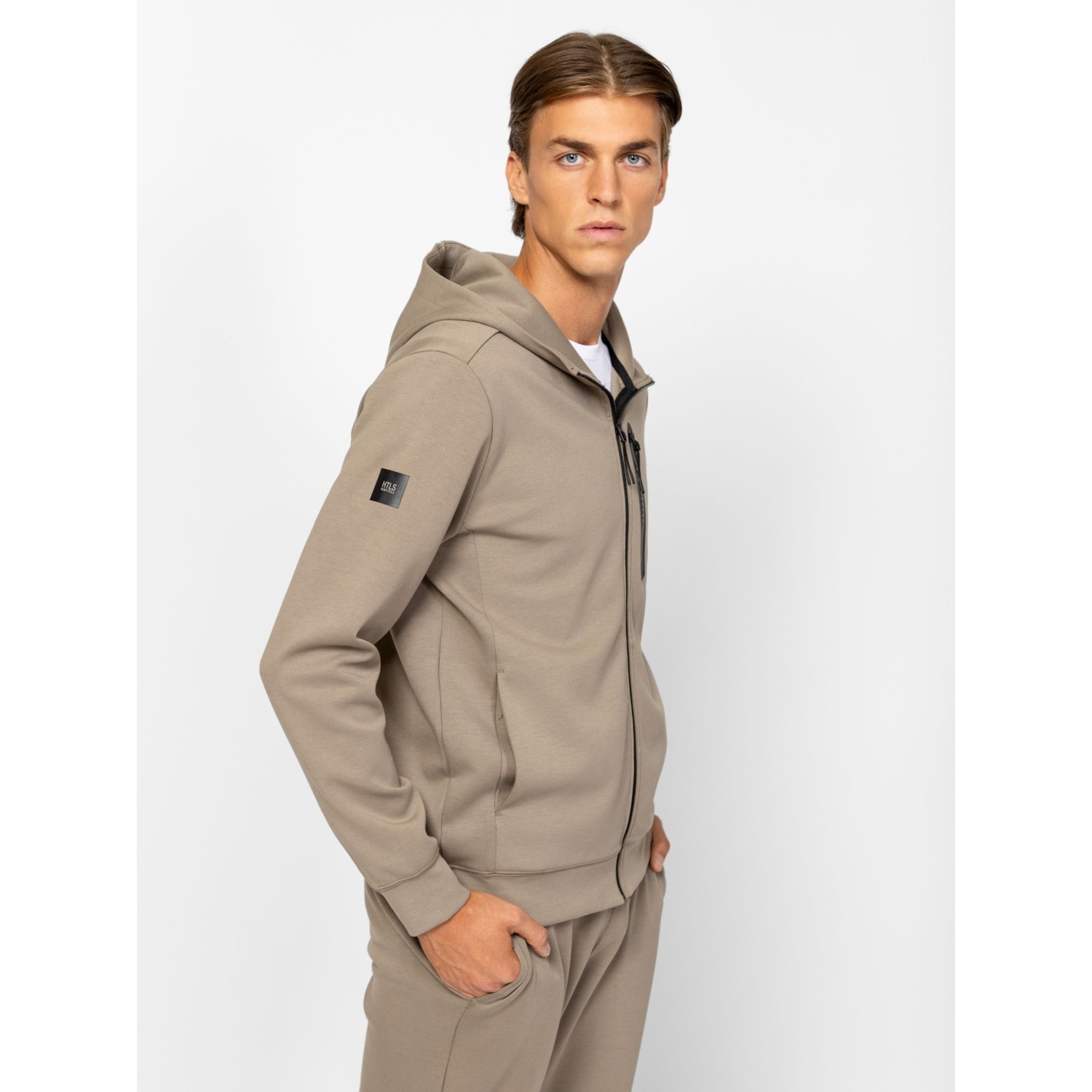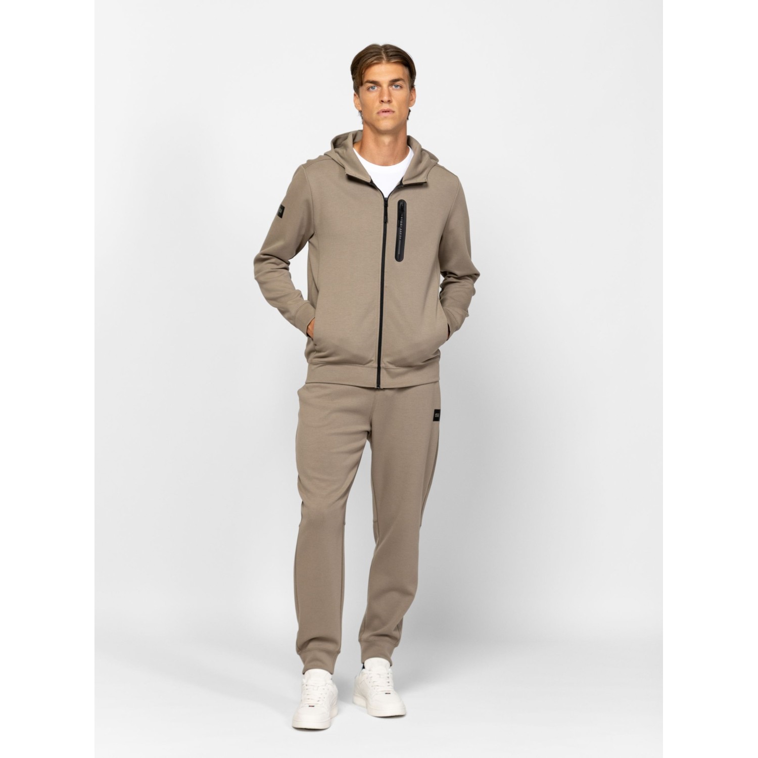 Férfi cipzáros, kapucnis pulóver, kényelemes szabással, eleje mell részen cipzáros zsebbel, szabásvonalba helyezett zsebekkel, nyomott márkajelzéssel az ujján. Viseld hozzá ZATOR melegítőnadrágunkat. Anyaga: 76% pamut, 19% poliészter, 5% elasztán. A modell 188 cm magas és L-es méretet visel.
