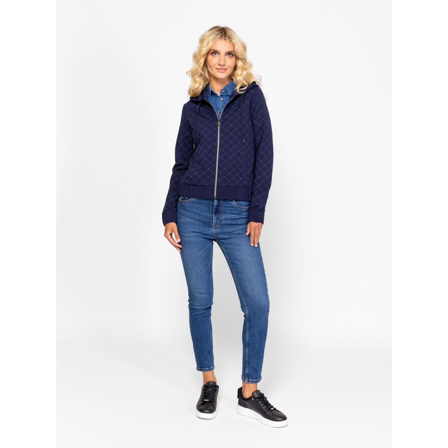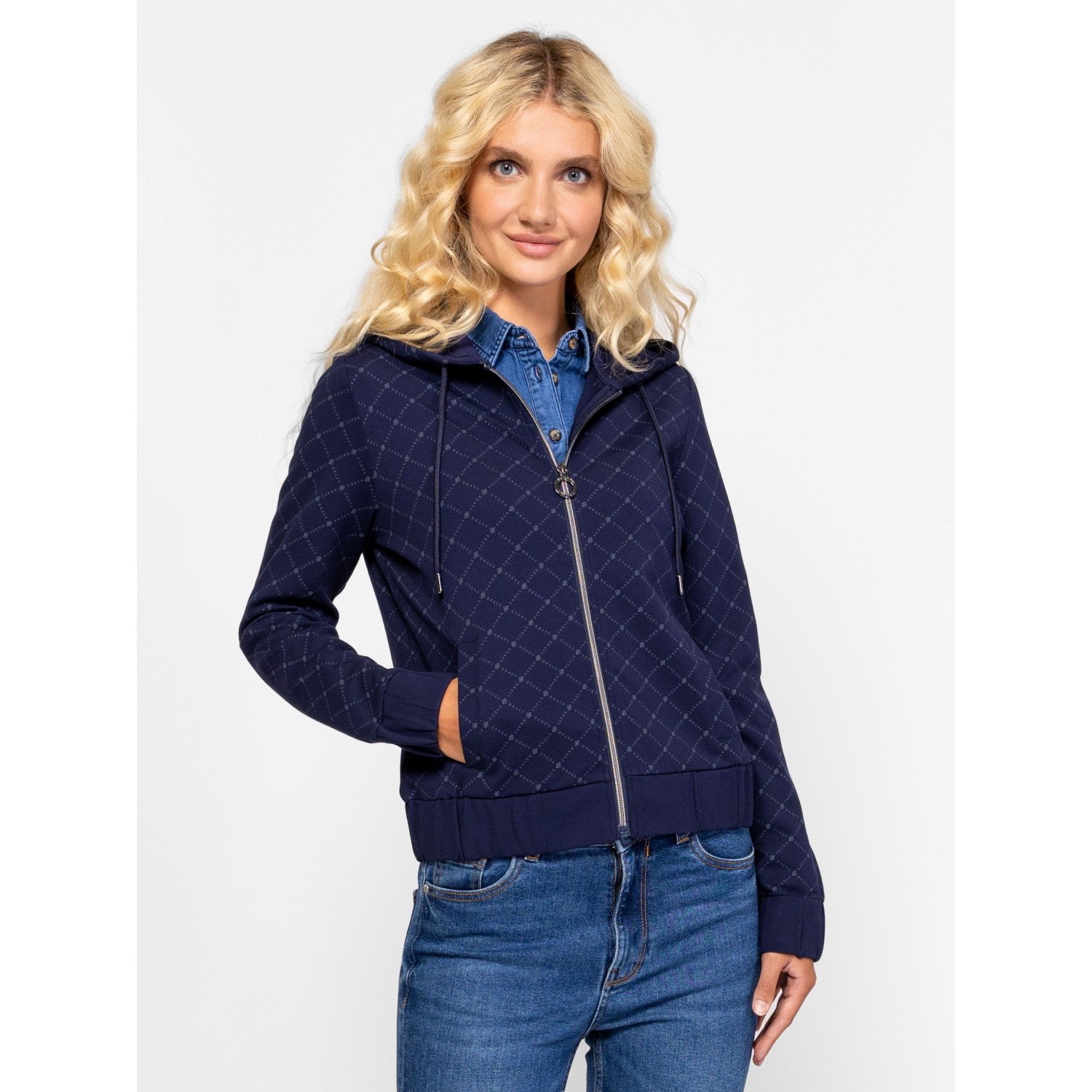 Női, kapucnis felső, cipzáros záródással, kényelmes szabással, egyenes zsebekkel, gumírozott aljjal és kézelővel, logó mintával, viszkózban gazdag, elasztikus anyagból. Viseld hozzá ZAMORKAW25 nadrágunkat az új kollekcióból. Anyaga: 63% viszkóz, 32% nylon, 5% elasztán. A modell 175 cm magas és S-es méretet visel.