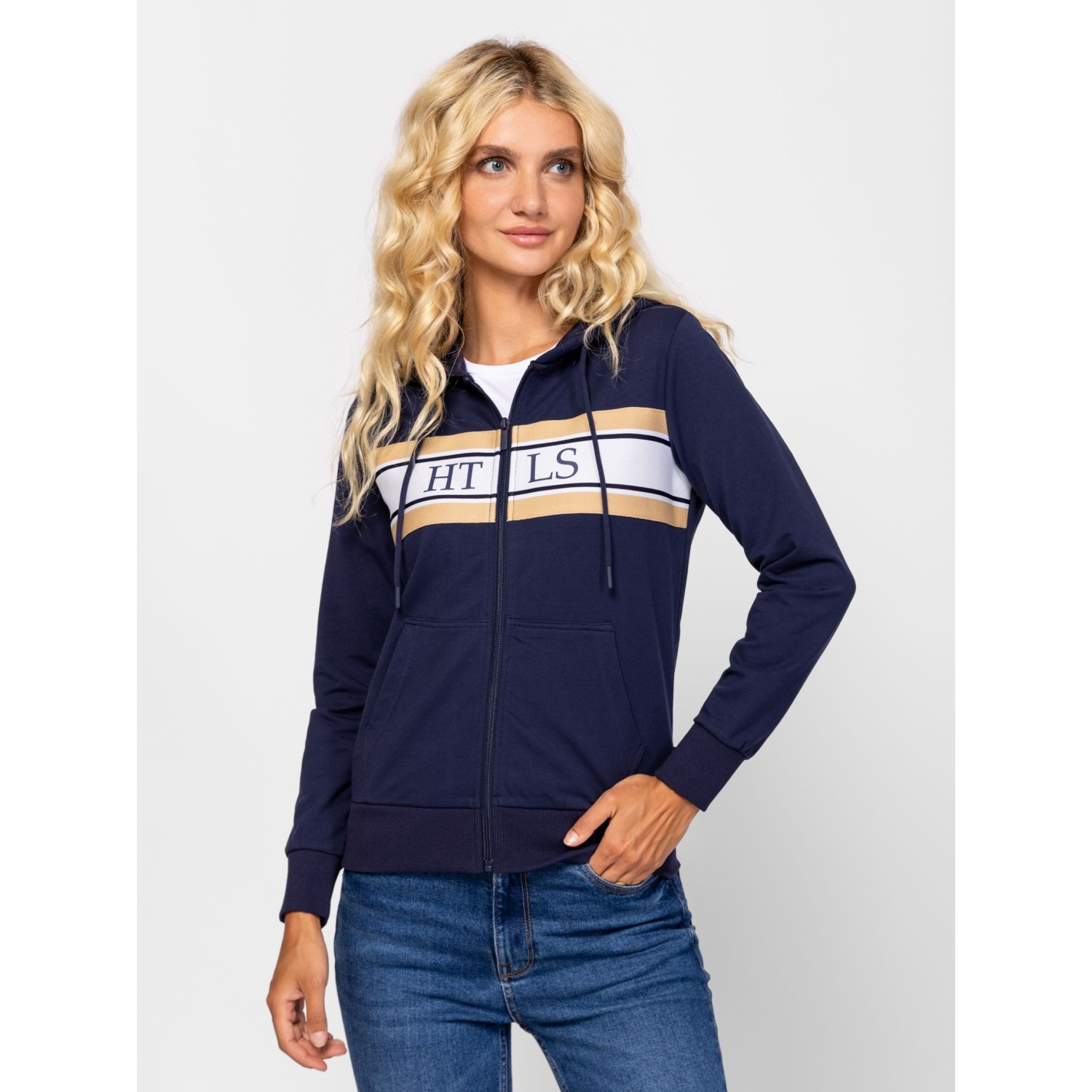 Női kapucnis pulóver, testhez álló fazonnal, cipzáros záródással, bordás passzés aljjal és kézelővel, egyenes zsebekkel, magas pamut tartalmú anyagból, nagy márkajelzéssel az elején. Válaszd hozzá ZARIVAW25 nadrágunkat! Anyaga: 58% pamut, 38% poliészter, 4% elasztán, belül enyhén bolyhozott fleece. A modell 175 cm magas és S-es méretet visel.