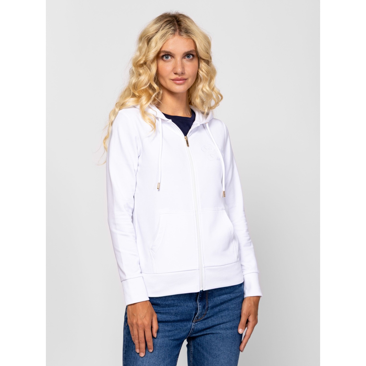 Női kapucnis pulóver, testhez álló fazonnal, bordás passzés aljjal és kézelővel, cipzáros záródással, kenguruzsebbel, brand színekben, magas pamut tartalmú anyagból, kis hímzett márkajelzéssel az elején. Válaszd hozzá ZARIVAW25, vagy ZYA nadrágunkat az új kollekcióból! Anyaga: 58% pamut, 38% poliészter, 4% elasztán, belül enyhén bolyhozott fleece. A modell 175 cm magas és S-es méretet visel.