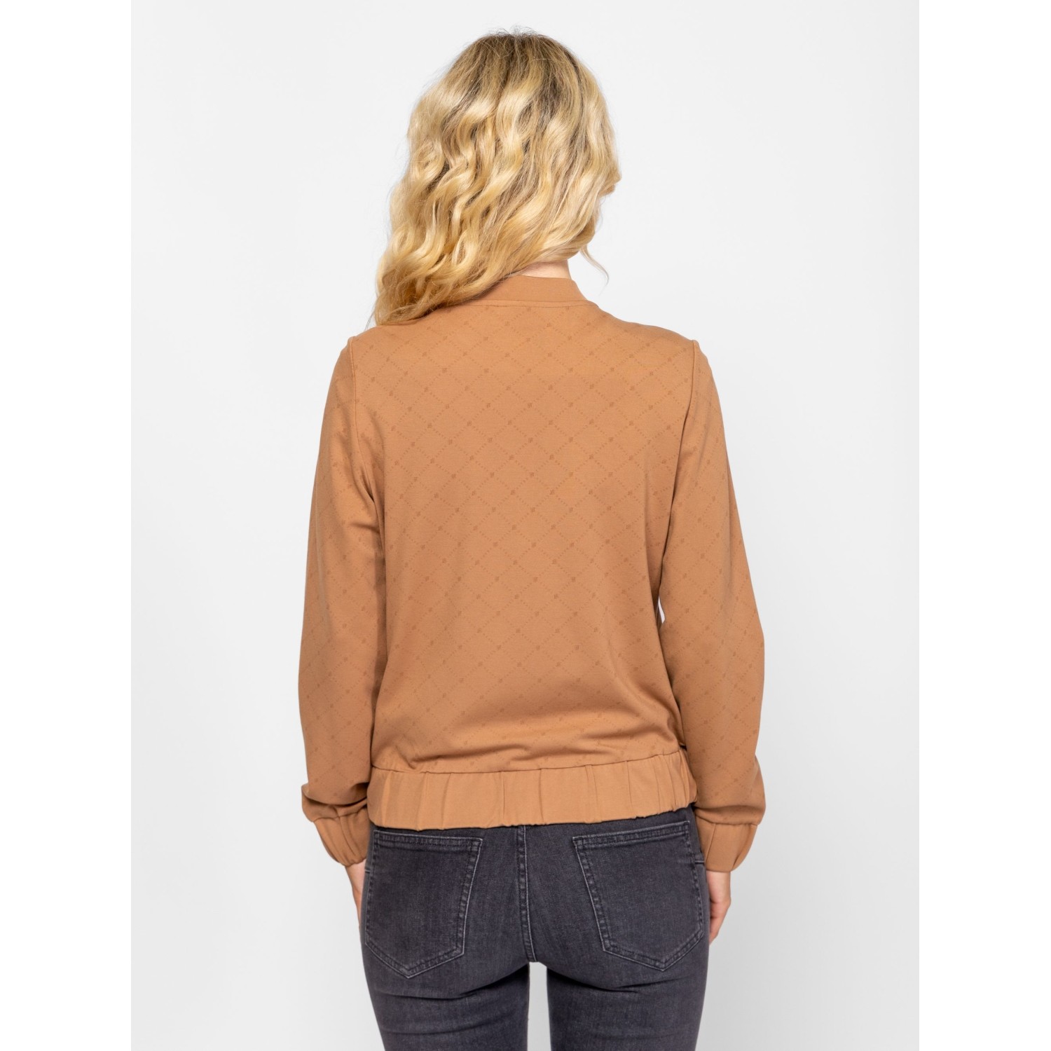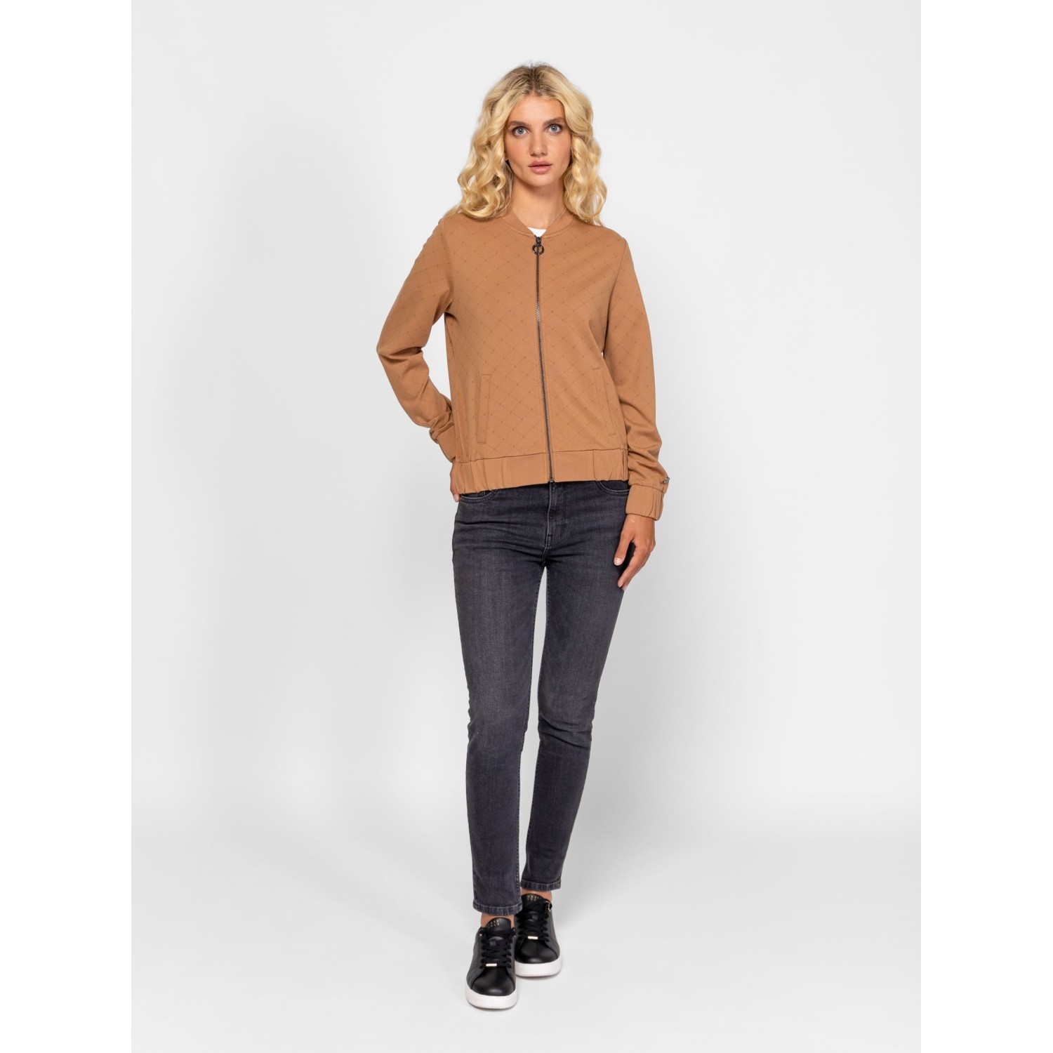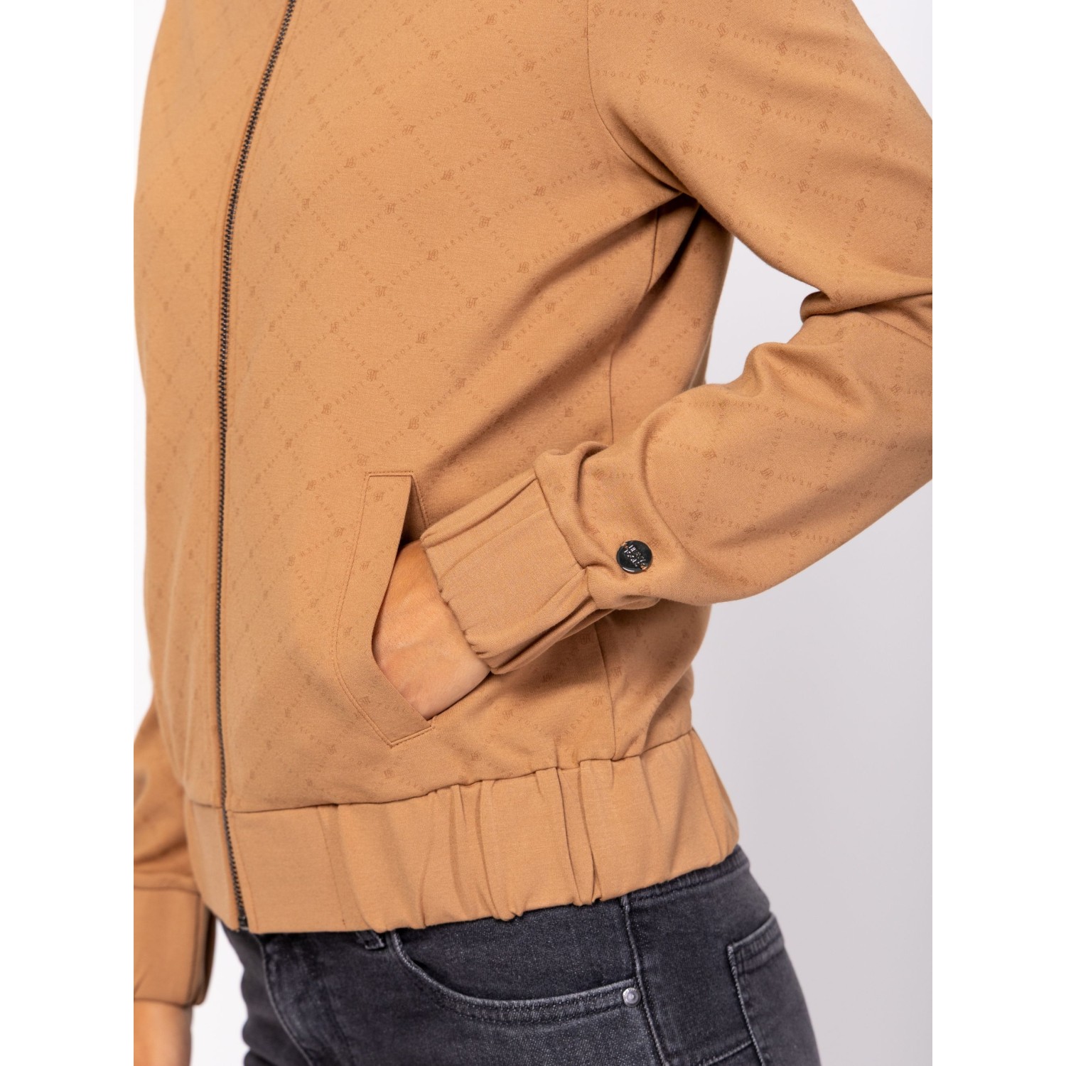 Női, állógalléros felső, cipzáros záródással, kényelmes szabással, álló gallérral, egyenes zsebekkel, gumírozott aljjal és kézelővel, logó mintával, ujján kis fém márkajelzéssel, viszkózban gazdag, elasztikus anyagból. Viseld hozzá ZAMORKAW25 nadrágunkat az új kollekcióból. Anyaga: 63% viszkóz, 32% nylon, 5% elasztán. A modell 175 cm magas és S-es méretet visel.