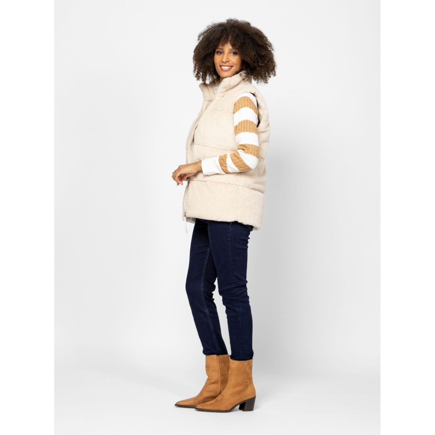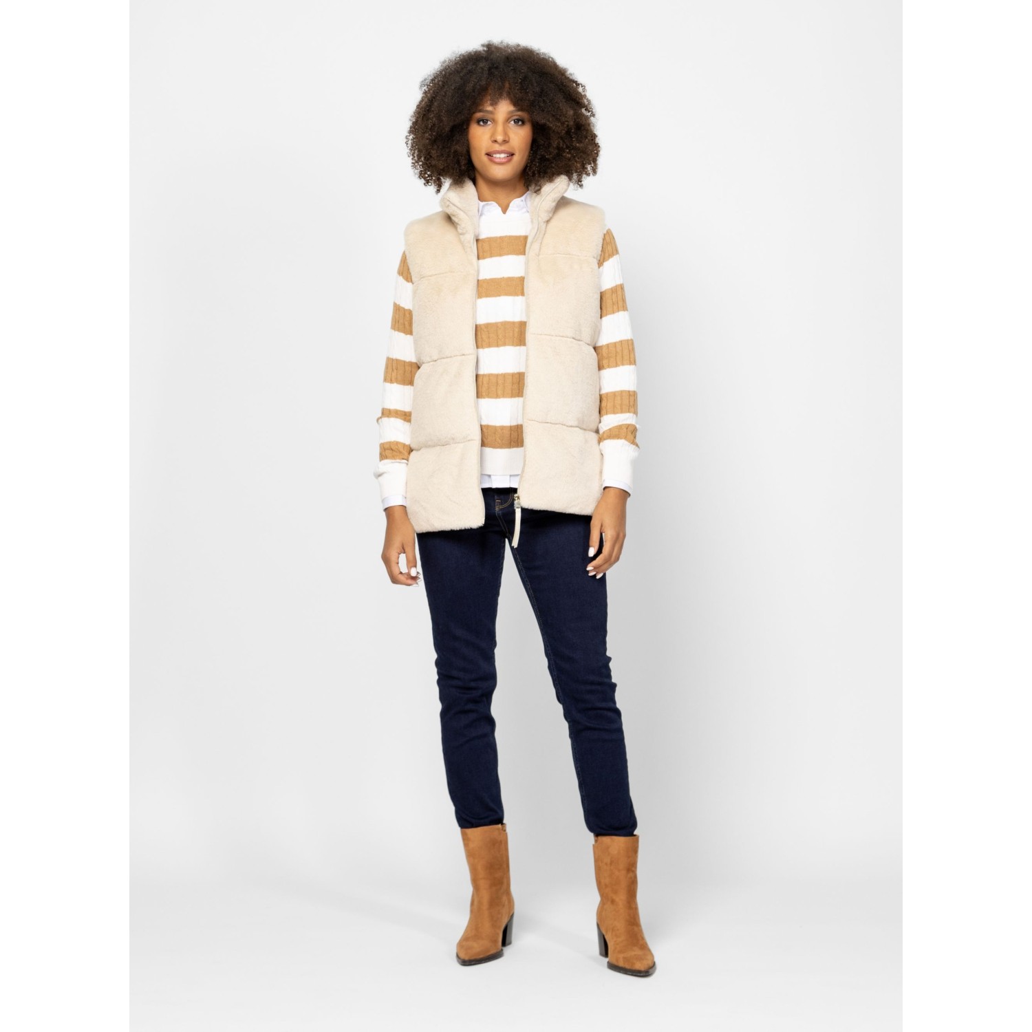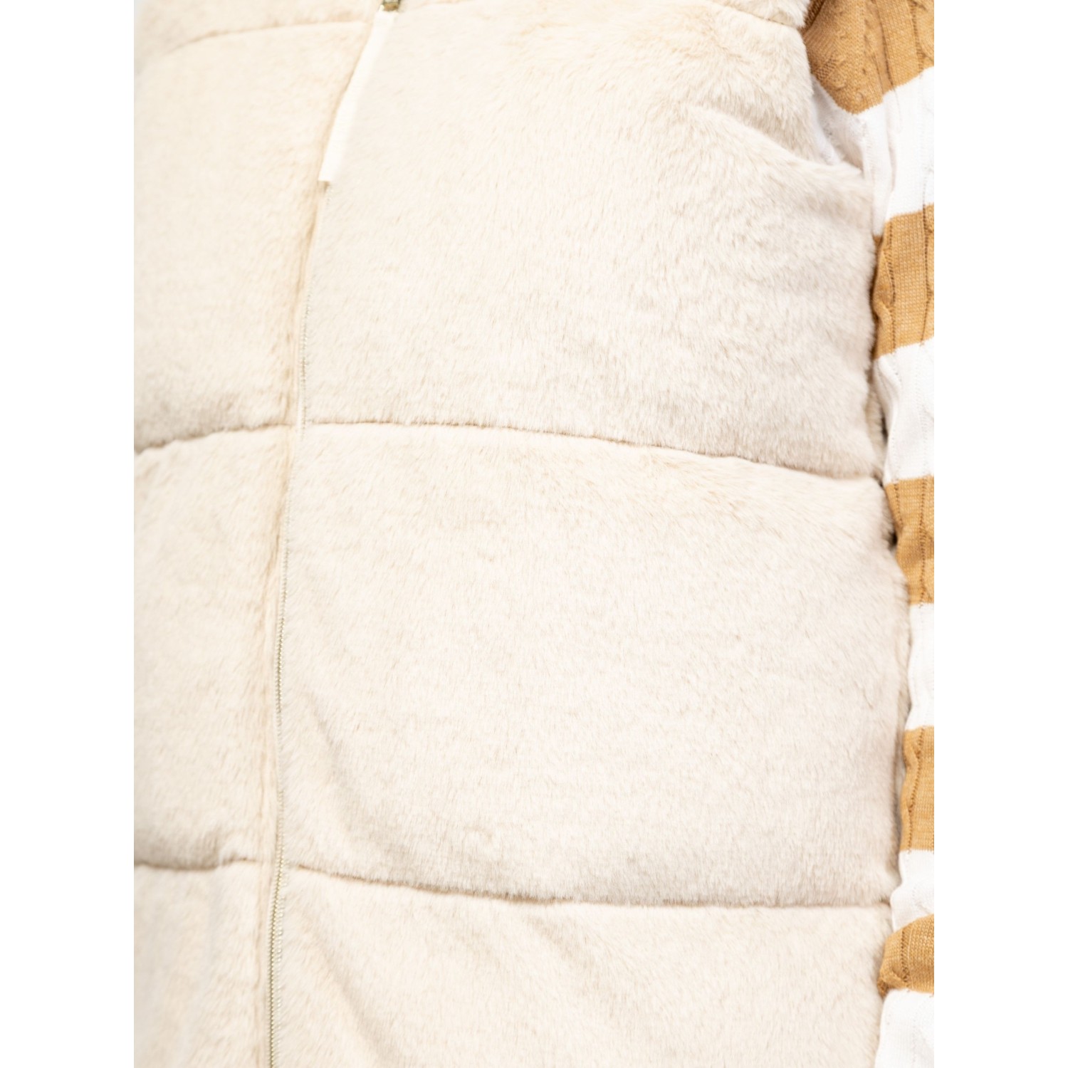 Női steppelt szőrme mellény, kényelmes szabással, ragyogó színekben, csípőig érő hosszal, álló gallérral, cipzáros záródással, logózott cipzárhúzóval. Anyaga: külső: 100% poliészter, bélés: 100% nylon, tömés: 100% poliészter. A modell 175 cm magas és S-es méretet visel.