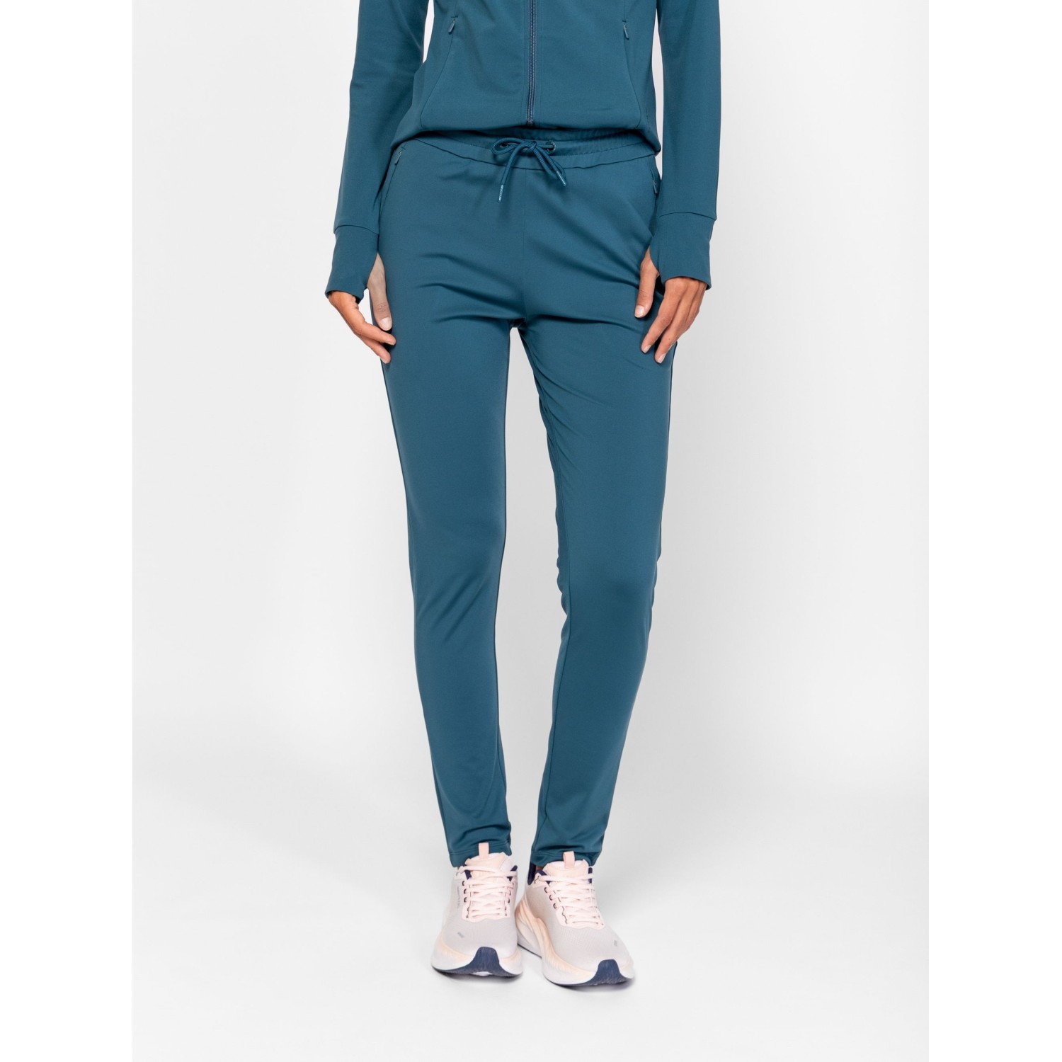 Női nadrág, lefelé szűkülő szárral, rejtett cipzáros zsebbel, gumis, húzózsinórral állítható derékkal, technikai anyagból, kis nyomott márkajeltéssel az elején. Viseld hozzá TATIVA felsőnket az új kollekcióból. Anyaga: 85% poliészter, 15% elasztán, belül bolyhozott thermo jersey, négy irányban elasztikus, gyorsan száradó anyag. A modell 175 cm magas és S-es méretet visel.