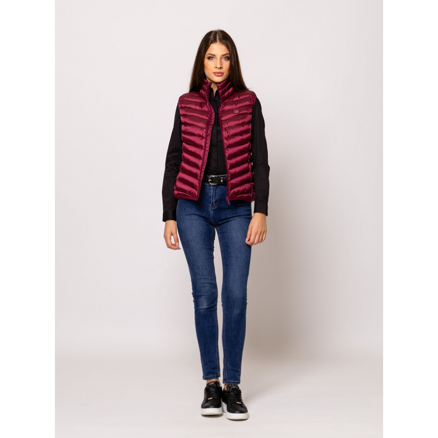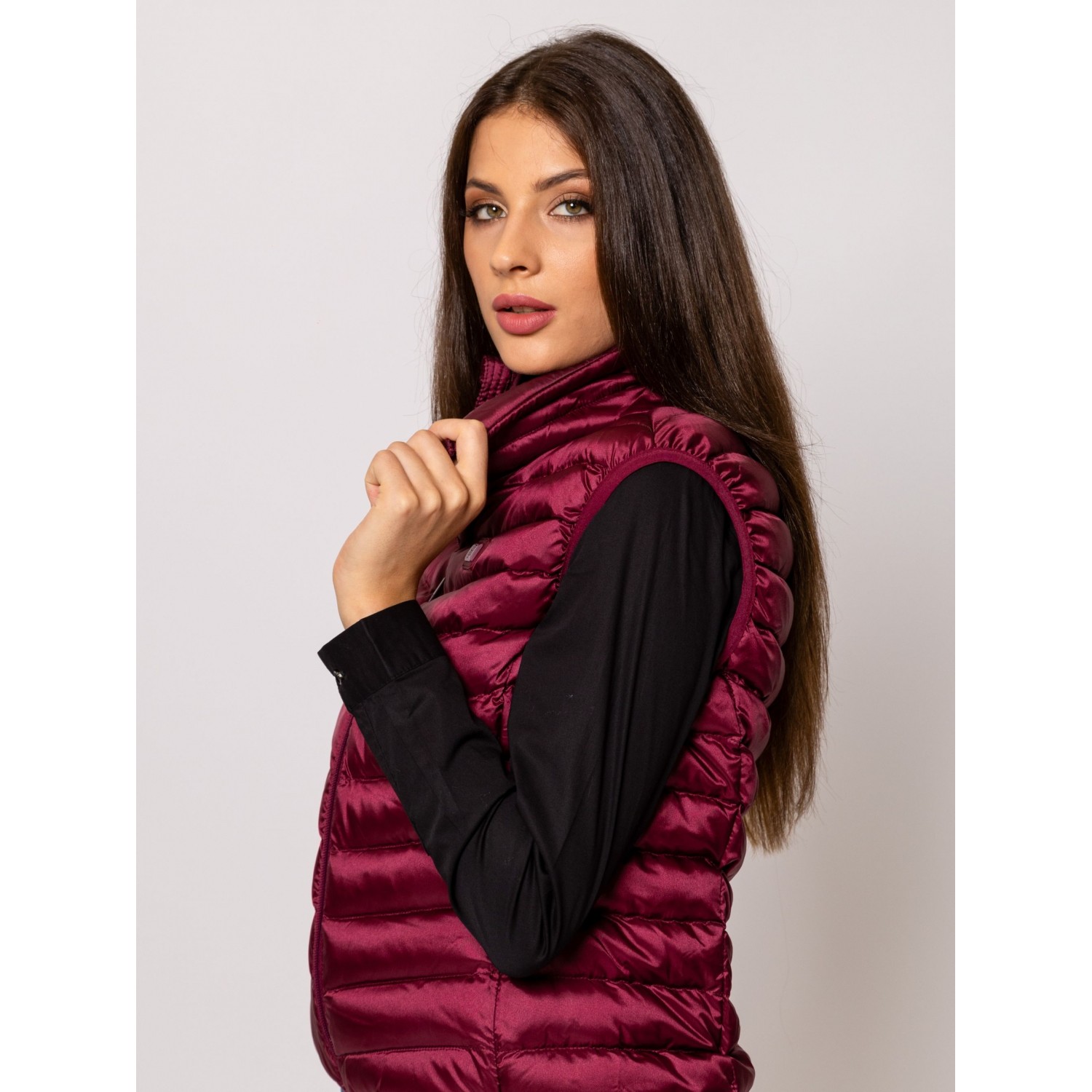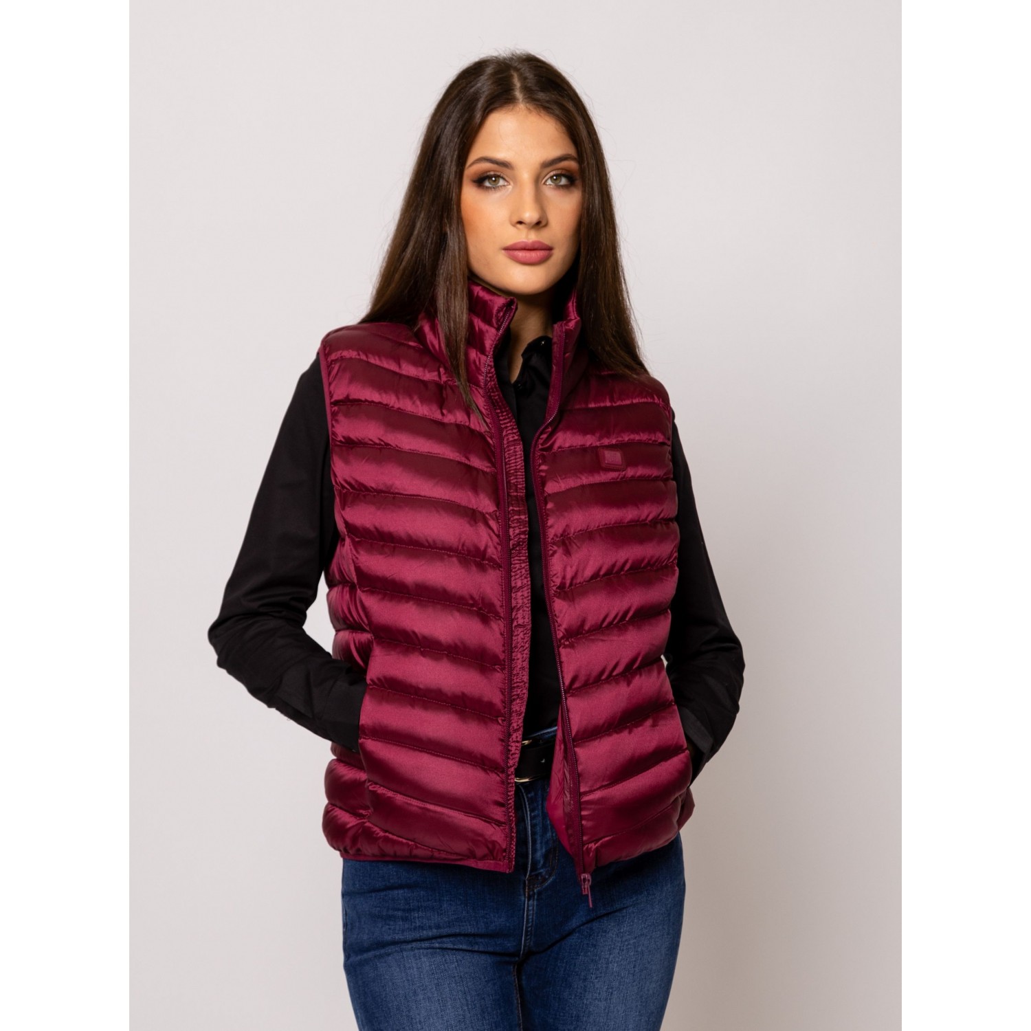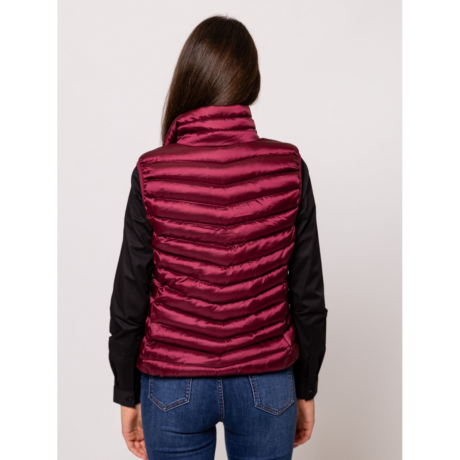 Női könnyű, steppelt mellény, kényelmes nőies szabással, csípőig érő hosszal, álló gallérral, belső szélfogóval, szabásvonalba helyezett, cipzáros zsebbel, ragyogó színekben, kis fém márkajelzéssel az elején. Anyaga: külső: 60% poliészter, 40% nylon, bélés: 100% poliészter, tömés: 100% poliészter, lightweight. A modell 175 cm magas és S-es méretet visel.