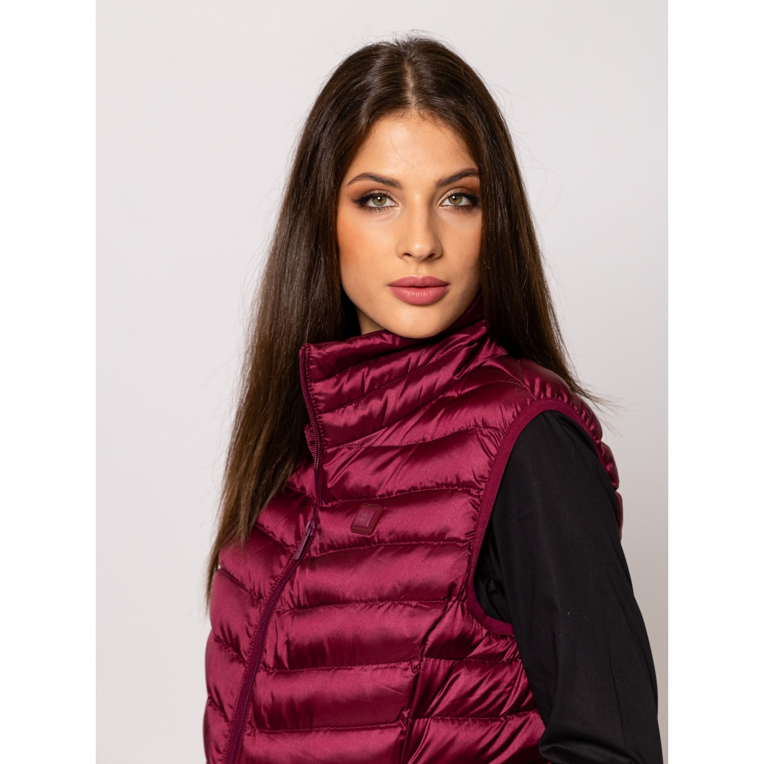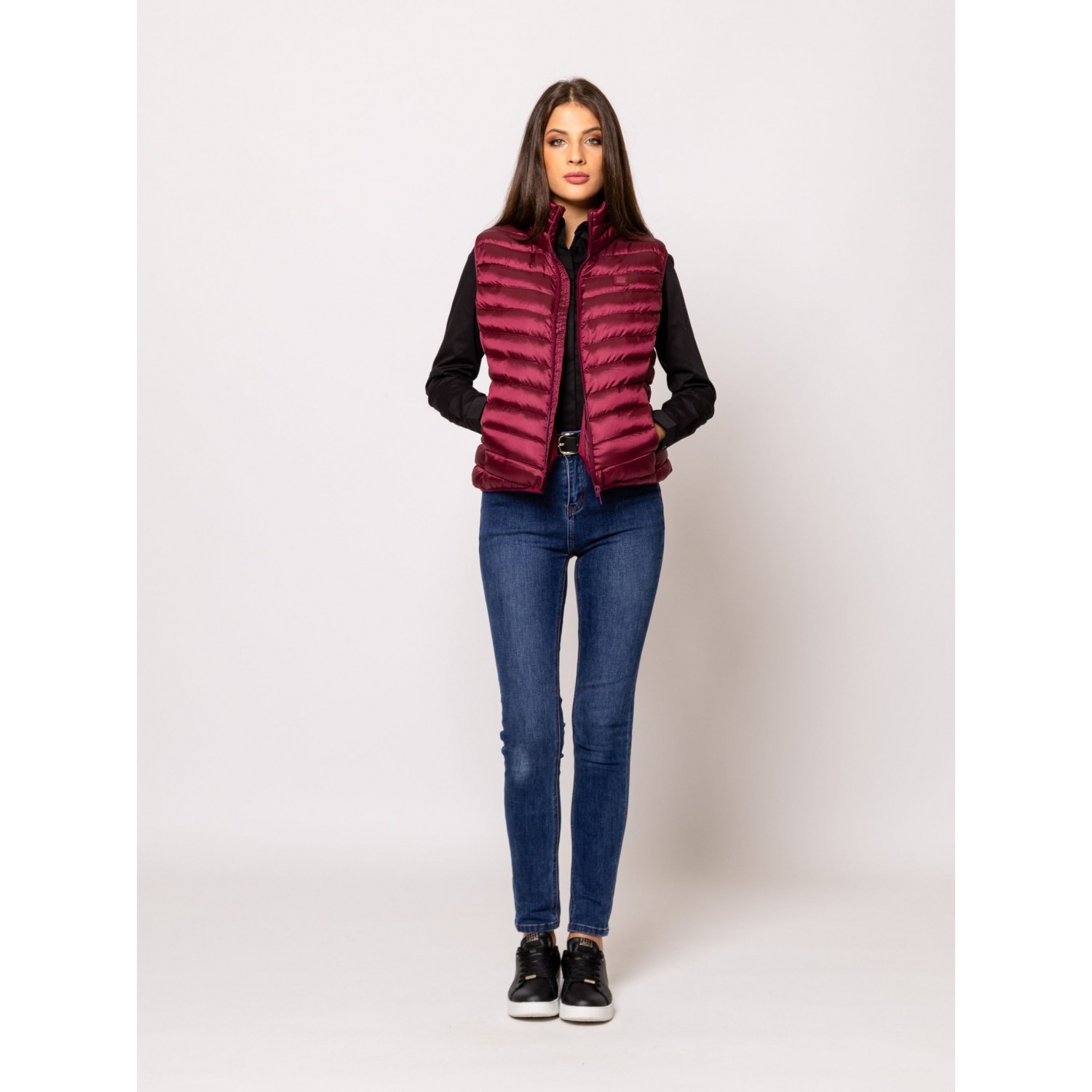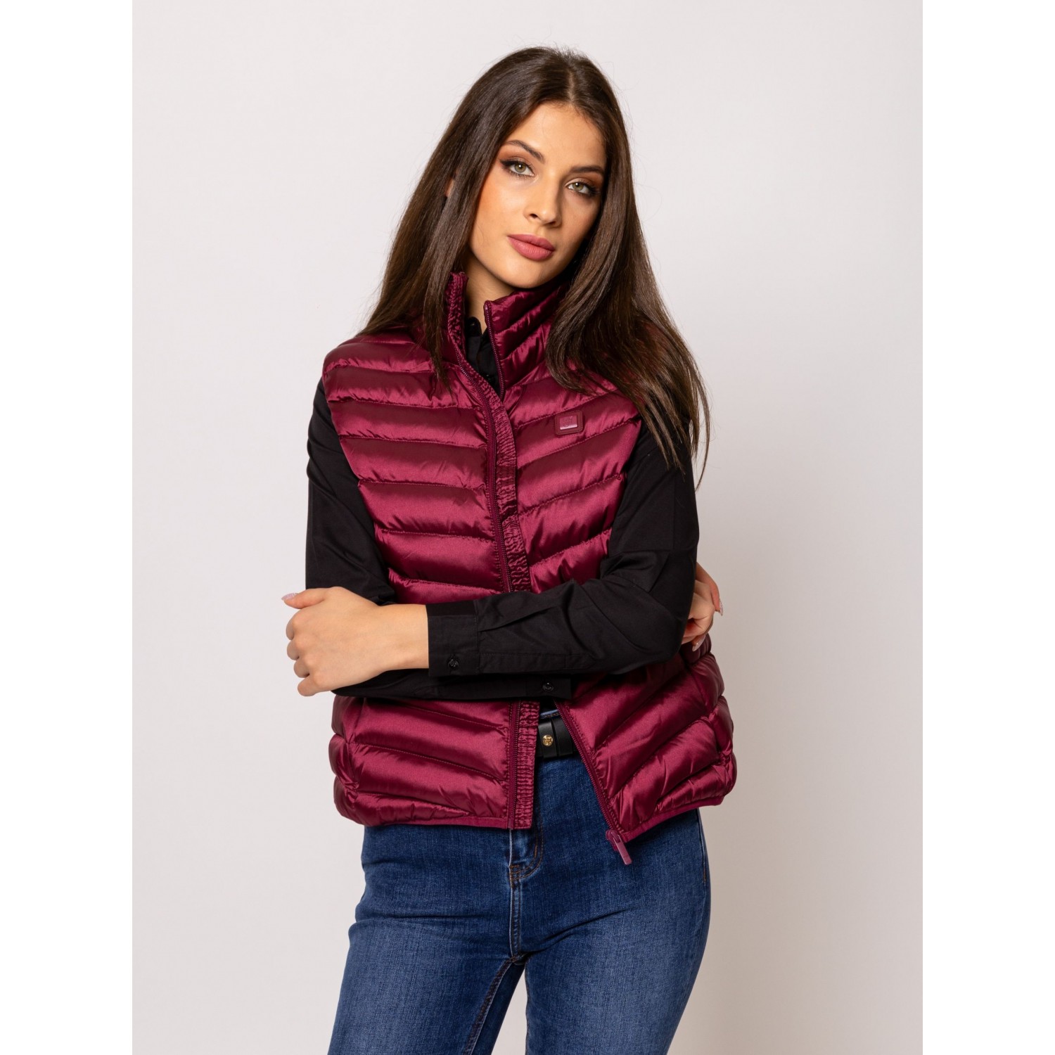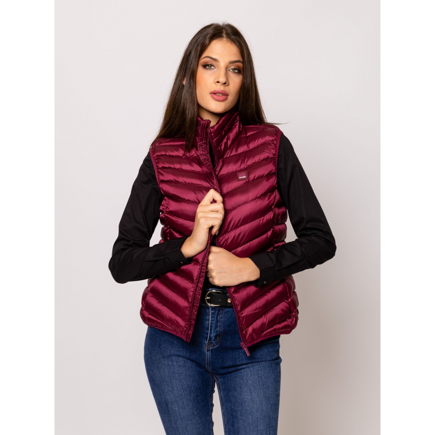 Női könnyű, steppelt mellény, kényelmes nőies szabással, csípőig érő hosszal, álló gallérral, belső szélfogóval, szabásvonalba helyezett, cipzáros zsebbel, ragyogó színekben, kis fém márkajelzéssel az elején. Anyaga: külső: 60% poliészter, 40% nylon, bélés: 100% poliészter, tömés: 100% poliészter, lightweight. A modell 175 cm magas és S-es méretet visel.